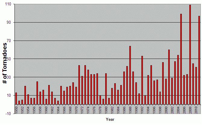 Une centaine de tornade ont balayé les Etats-Unis, depuis le Midwest jusqu’au Golfe du Mexique au cours de la semaine dernière et ce phénomène est plus important que ce que l’on observe habituellement pour la totalité du mois de Mars.