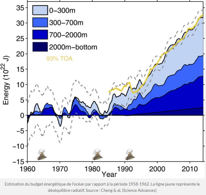 Selon une nouvelle étude menée par des scientifiques du Centre national pour la recherche atmosphérique (NCAR) et l’Académie chinoise des sciences, le réchauffement des océans a été quatre fois plus rapide sur la période 1992-2015 que sur 1960-1991. La chaleur a gagné les couches les plus profondes.