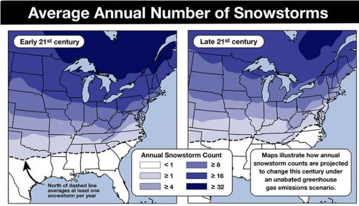 Le changement climatique pourrait réduire significativement le nombre et l'intensité des tempêtes de neige aux USA h1>