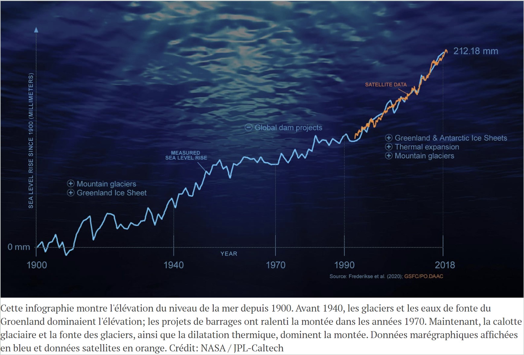 Partager sur Twitter Partager sur LinkedIn Partager sur Facebook Partager sur Whatsapp Imprimer Envoyer par mail Copier le lien Une recherche de la NASA révèle les vraies causes de l'élévation du niveau de la mer depuis 1900 h1> Catégorie : Veille changements climatiques Publié le : 25 août 2020 Modifié le : 30 septembre 2020 niveau marin 1900 250820Les scientifiques ont acquis de nouvelles connaissances sur les processus qui ont entraîné les variations du niveau des océans pendant plus d'un siècle, nous aidant à nous préparer à la montée des mers du futur. S'identifier ou s'abonner pour lire la suite