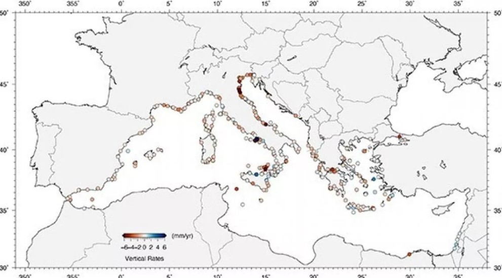 « L’affaissement, c’est-à-dire le lent mouvement descendant des terres dû à des causes naturelles ou anthropiques, joue un rôle crucial dans l’accélération de l’élévation du niveau de la mer le long des côtes, déclenchée par le réchauffement climatique depuis 1880 », observe Marco Anzidei, de l’INGV, auteur de l’étude avec Antonio Vecchio et Enrico Serpelloni. « Nos analyses montrent que, précisément à cause de l’affaissement, dans certaines zones de la Méditerranée, le niveau de la mer augmente presque trois fois plus vite que dans les zones stables », ajoute Vecchio de l’Université Radboud, premier auteur de la recherche.
