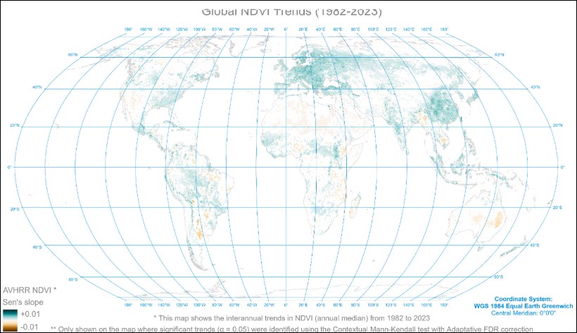Une étude récente menée par Oliver Gutiérrez-Hernández et Luis V. García et publiée dans la revue Remote Sensing Application propose une nouvelle méthodologie, appelée True Significant Trends (TST), pour analyser les tendances de verdissement global en utilisant des données satellitaires sur 42 ans (1982-2023).