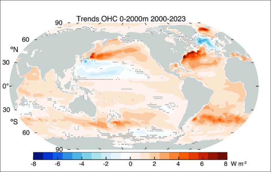 Les océans du monde se réchauffent plus rapidement dans deux bandes qui s’étendent autour du globe, l’une dans l’hémisphère sud et l’autre dans le nord, selon une nouvelle recherche menée par le climatologue Kevin Trenberth.