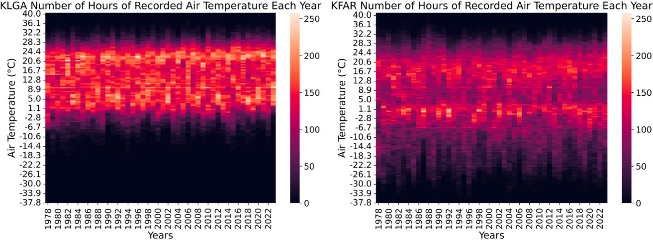 L'étude des données météorologiques horaires historiques et de la durée pendant laquelle les températures restent supérieures ou inférieures à certains seuils révèle plusieurs impacts des tendances régionales américaines en matière de changement climatique. Le papier est publié dans le journal PLOS Climat.