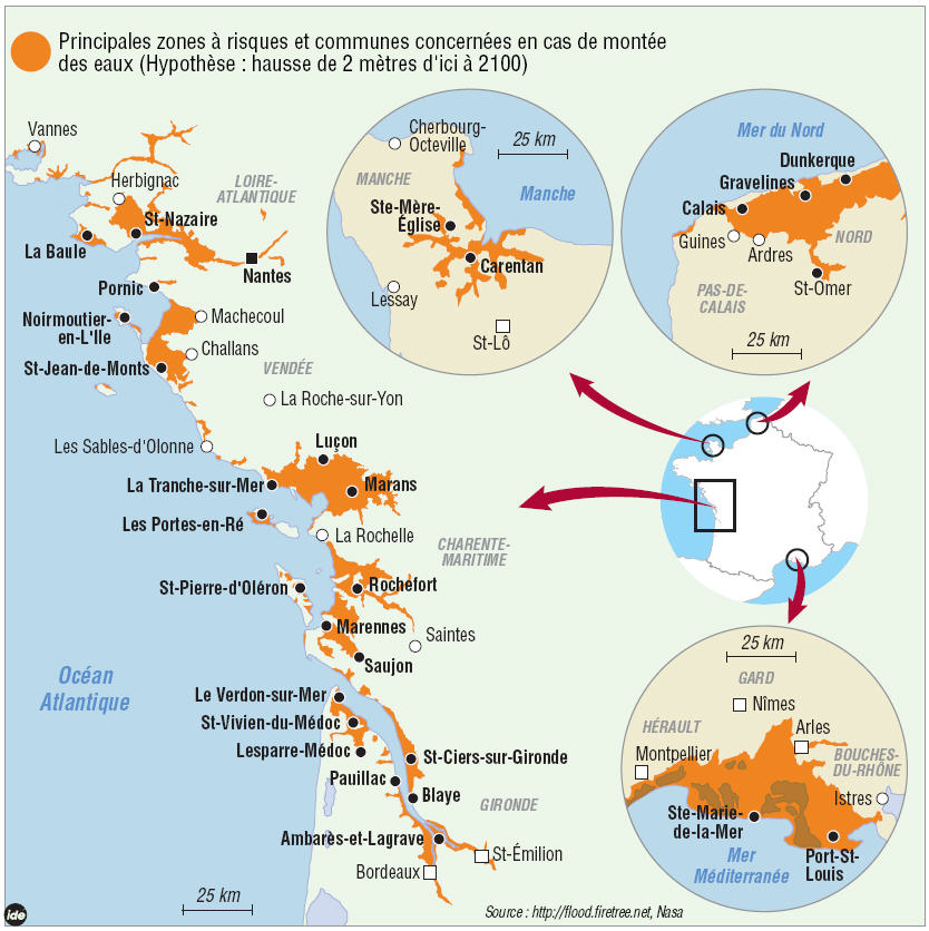 Partager sur Twitter Partager sur LinkedIn Partager sur Facebook Partager sur Whatsapp Imprimer Envoyer par mail Copier le lien Les littoraux français très menacés par la hausse du niveau marin h1> Catégorie : Veille changements climatiques Publié le : 18 décembre 2007 Modifié le : 7 juin 2022 ImageUne montée prévisible de plus d’un mètre soixante du niveau des océans au cours du XXIe siècle augmente les risques d’inondation sur le littoral français. S'identifier ou s'abonner pour lire la suite