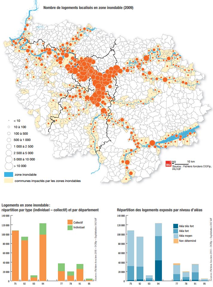 Selon un rapport publié par l'Institut d'aménagement et d'urbanisme (IAU), une semaine après un exercice de simulation d'inondation en aval de la capitale, quelque 430.000 logements d'Île-de-France, soit près de 8% de l'habitat, sont menacés en cas de grande crue semblable à celle qui frappa Paris en 1910.