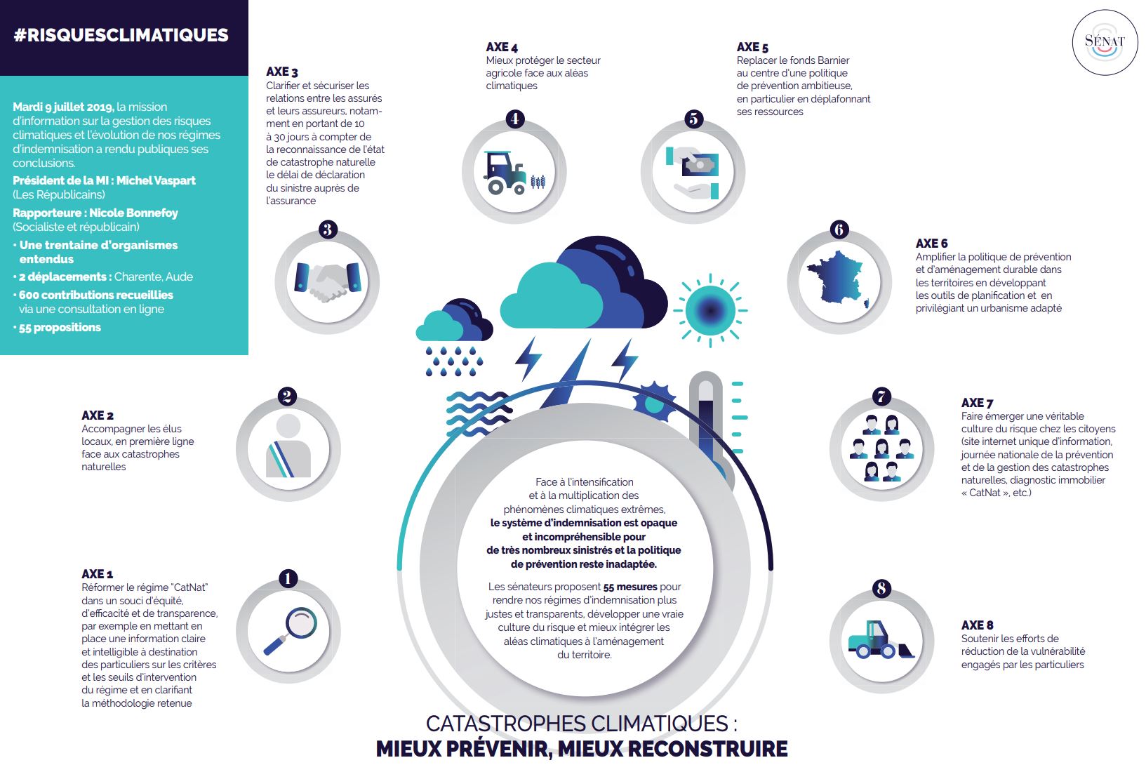 Le Sénat présente aujourd'hui un rapport sur les conséquences du réchauffement climatique, et sur la façon dont sont prises en charge les victimes du réchauffement climatique en France. Une équipe de 27 sénateurs issus de l'ensemble des groupes politiques ont travaillé pendant six mois sur ce sujet, rencontré une trentaine d'organismes, établissements publics, sinistrés et assureurs.