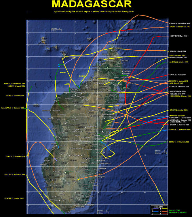 Située au milieu du bassin cyclonique du Sud-Ouest de l'océan Indien, Madagascar paye, presque chaque année, un lourd tribut humain et matériel en raison du passage de cyclones et tempêtes tropicales.
