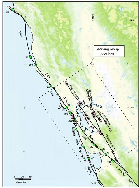 Selon une étude, publiées lundi 13 octobre dans le Bulletin of the Seismological Society of America, quatre failles situées sous des zones urbaines du système de faille de San Andreas dans la Californie du Nord ont "cumulé assez d'énergie pour provoquer des tremblements de terre majeurs", d'une magnitude de 6,8 ou plus.
