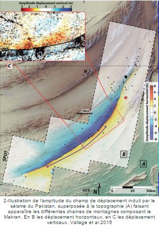 Grâce à la mise au point de techniques de corrélation de pixels entre images, utilisant des images du satellite SPOT-5 acquises avant et après le séisme du Pakistan (2013, magnitude 7.7), des chercheurs de l’Institut de physique du globe de Paris (CNRS, Paris Diderot, Sorbonne Paris Cité) et un chercheur de l’IGN ont pu calculer, avec une précision inégalée, le déplacement horizontal induit par le séisme en surface.