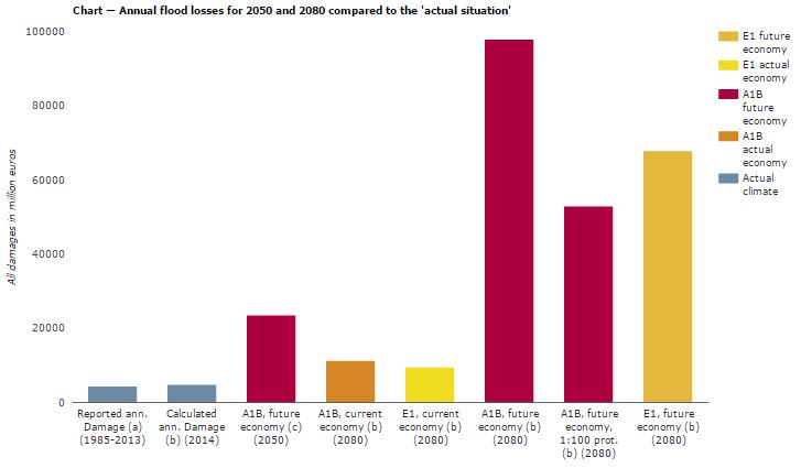 Un rapport de l'agence européenne pour l'environnement cité par la revue New Scientist indique que dans les décennies à venir les inondations en Europe pourraient devenir de plus en plus fréquentes. Selon les auteurs, si l'on ne prend pas de mesures, dans 30-70 ans le réchauffement climatique pourrait plonger sous l'eau de vastes territoires dans l'est, l'ouest et le centre de l'Europe.