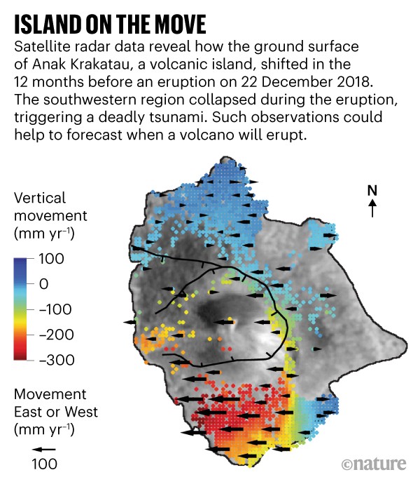 Au début de 2018, le volcan indonésien Anak Krakatoa entre en éruption et a commencé à s'effondrer. C'était une transformation subtile - une que personne n'a remarqué à l'époque. Les flancs sud et sud-ouest du volcan glissaient vers l'océan à un rythme d'environ 4 millimètres par mois, un décalage si petit que les chercheurs ne l'ont vu qu'après coup pendant qu'ils parcouraient les données radar du satellite .
