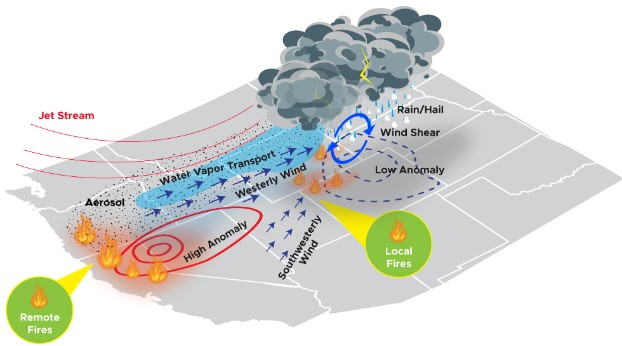 L'augmentation des incendies de forêt constitue une menace importante pour la vie et les biens aux États-Unis. L'impact des feux de forêt sur les tempêtes violentes et les risques météorologiques est une autre voie qui menace la société, et dont notre compréhension est très limitée.