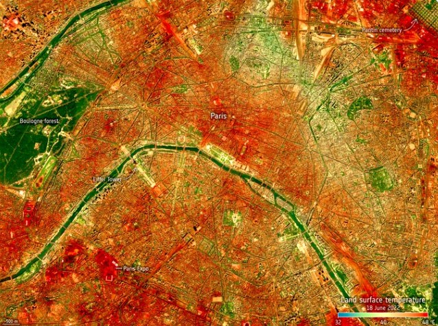 Selon une étude publiée dans la revue The Lancet Planetary Health en mars menée par des chercheurs britanniques ont étudié, pour plus de 800 villes d’Europe, les risques de surmortalité liés aux températures extrêmes, Paris serait la ville où le risque de mourir de chaud est le plus élevé.