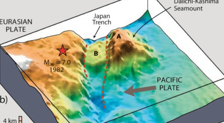 Dans une nouvelle étude publiée dans le Journal of Geophysical Research : Solid Earth, des chercheurs montrent qu'un volcan sous-marin assis sur une plaque tectonique en subduction au large des côtes du Japon et se frayant un chemin dans le manteau terrestre pourrait être à l’origine de plusieurs tremblements de terre de magnitude 7 au cours des 40 dernières années.