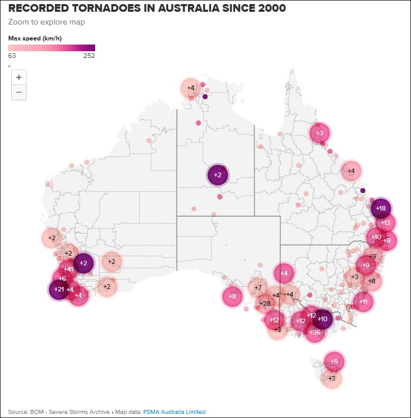 Bien que le pays ne soit pas aussi connu pour l’activité des tornades que des régions comme les États-Unis, les tornades en Australie sont des événements assez réguliers.