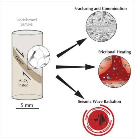 Les secousses de sol générées par un tremblement de terre ne représentent qu’une fraction de l’énergie totale libérée par un tremblement de terre. Un tremblement de terre peut également générer un éclair de chaleur, ainsi qu’une fracturation domino des roches souterraines.