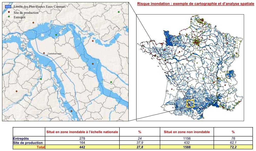 En France, la modélisation de la vulnérabilité s’appuie généralement sur la géographie par le biais de cartographies de scénarii d’aléas issus de relevés de terrain d’événements historiques, confrontées avec des données d’occupation du sol (zones industrielles, logements, infrastructures, etc.).