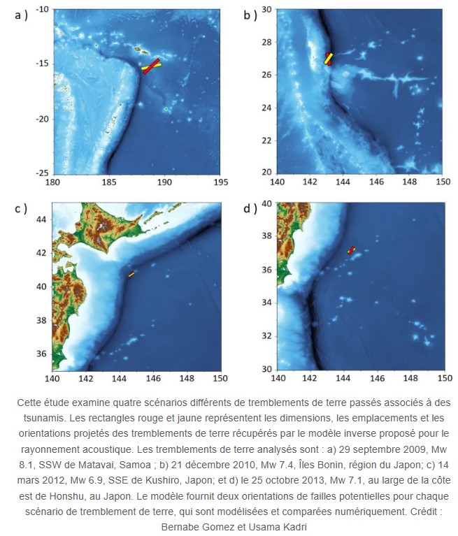 Dans un article publié par la revue Physics of Fluids, des chercheurs de l'université de Californie à Los Angeles (États-Unis) et de l'université de Cardiff (Royaume-Uni) ont mis au point un système d'alerte, associant une technologie acoustique avec l'intelligence artificielle (IA) pour déterminer le type de séisme et en déduire le risque de tsunami.