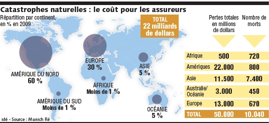 Bilan 2009 des catastrophes naturelles dans le monde vu par le 1er réassureur mondial h1>
