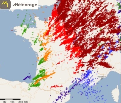 Le réseau national de détection de la foudre de Météorage a enregistré un peu plus de 156 000 éclairs nuage-sol au cours du premier semestre de 2012 sur l’ensemble du territoire.