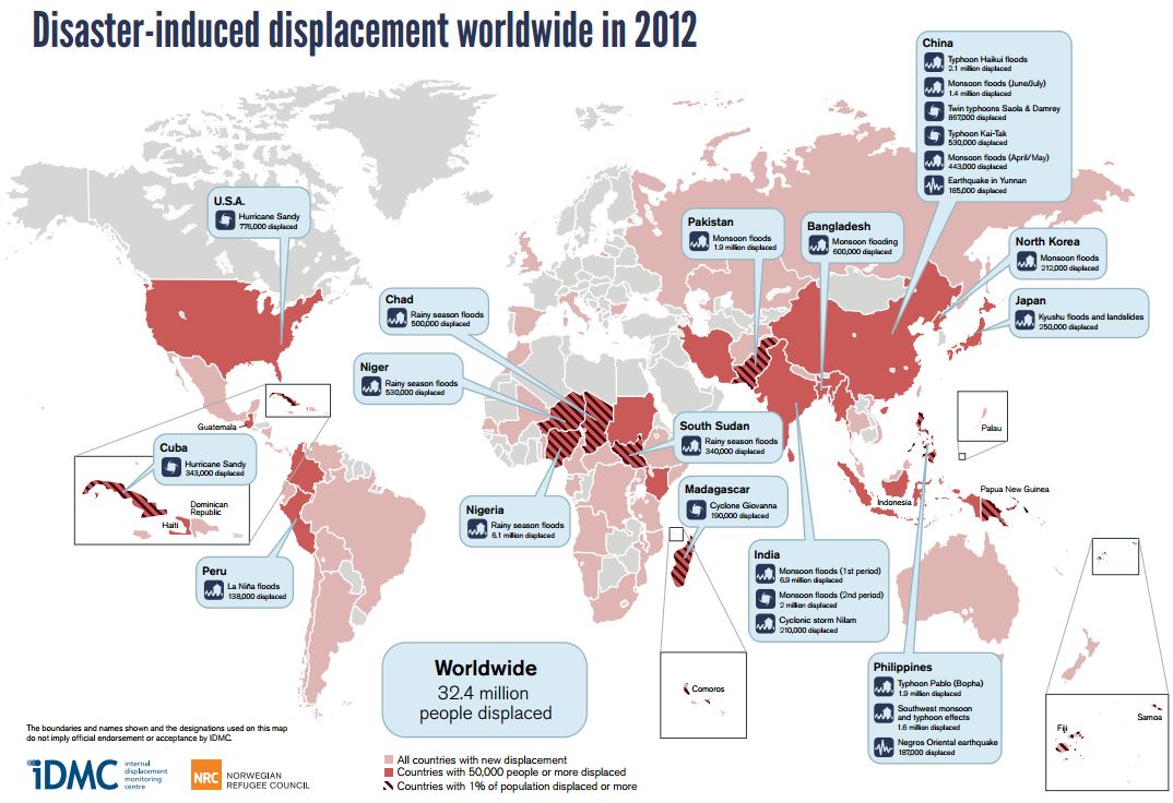 Les événements climatiques et météorologiques extrêmes ont contraint au déplacement 32 millions de personnes dans le monde en 2012 h1>