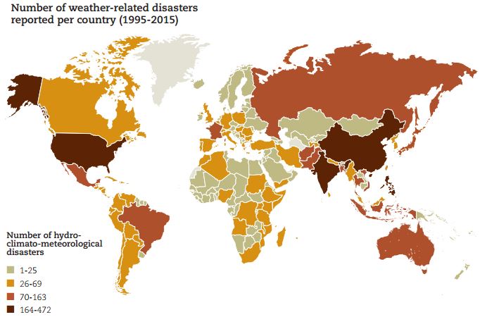 Selon un nouveau rapport de l'ONU, lors des vingt dernières années, les catastrophes météorologiques (6457 inondations, tempêtes, vagues de chaleur, sécheresse et autres événements météorologiques) ont pris 606.000 vies, soit en moyenne 30.000 par an, avec en plus 4,1 milliards de personnes blessées, devenues sans-abri ou ayant eu besoin d'une aide d'urgence.