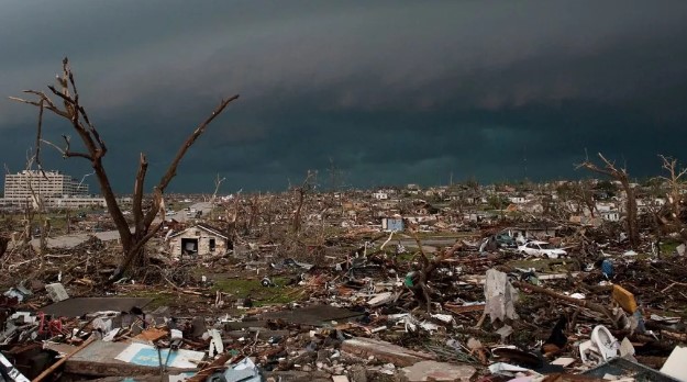 Les tornades classées 5 sur l’échelle d’intensité du National Weather Service sont si fortes qu’elles peuvent balayer les villes et laisser des dégâts comme si la ville avait été bombardée avec une destruction totale.
