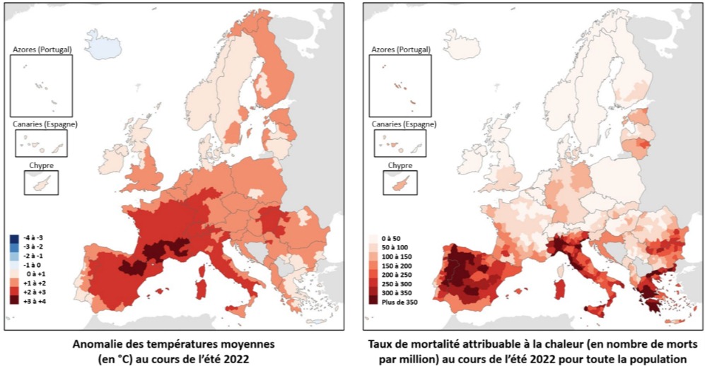 L’été 2022 détient le record de l’été le plus chaud jamais enregistré en Europe. D'après une étude de l’Insee, la surmortalité, soit l’excédent de décès observés par rapport à ceux attendus, a été plus forte sur la période de début juin à fin août 2022 (9,1%), par rapport à 2021 (3,0%) et 2020 (0,37%) sur les mêmes périodes.