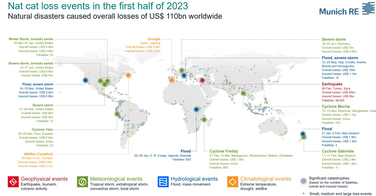 Le premier semestre de 2023 s’inscrit dans la continuité de la récente série d’années avec des pertes élevées selon le réassureur Munich Ré.