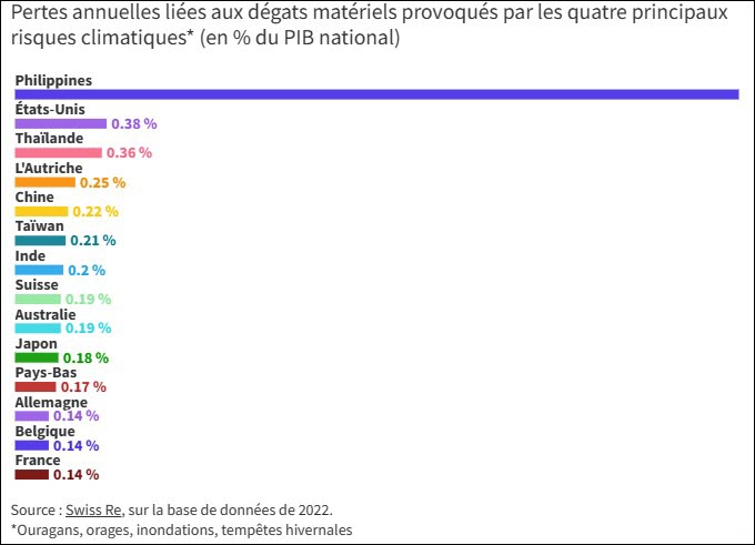 Selon une étude publiée par le groupe de réassurance Swiss Re, les catastrophes naturelles d'origine climatique coûtent environ 200 milliards de dollars (soit 184 milliards d’euros) chaque année pèsent sur l’économie des différents pays de manière différenciées.