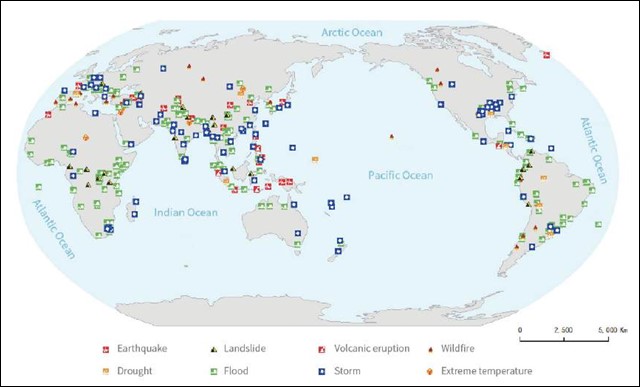 L'ONU a publié son rapport d'évaluation des catastrophes naturelles en 2023. Il en ressort que par rapport à la moyenne des 30 dernières années (1993-2022), la fréquence des catastrophes naturelles mondiales était inférieure de 3 % en 2023, la population touchée était inférieure de 53 %, la population tuée était supérieure de 73 %, mais les pertes économiques directes étaient 32 % plus élevées.