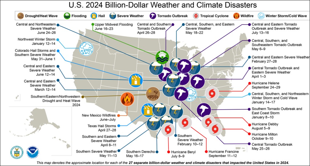 Les Centres Nationaux d’Information Environnementale (NCEI) de la NOAA ont mis à jour leur analyse des catastrophes de plusieurs milliards de dollars pour l’année 2024.