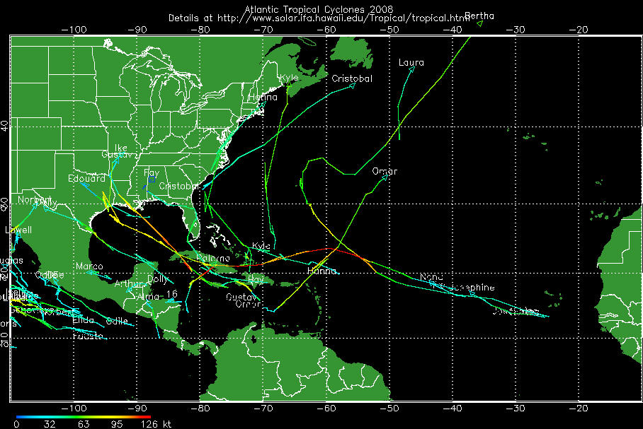 Bilan de la saison cyclonique 2008 sur l'Atlantique Nord h1>