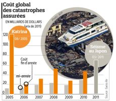 - Le coût annuel mondial des catastrophes naturelles à triplé au cours des 40 dernières années (10 mai 2011)