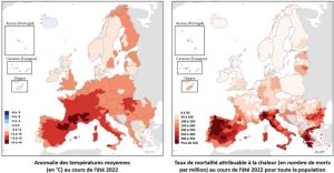 L’été 2022 détient le record de l’été le plus chaud jamais enregistré en Europe. D'après une étude de l’Insee, la surmortalité, soit l’excédent de décès observés par rapport à ceux attendus, a été plus forte sur la période de début juin à fin août 2022 (9,1%), par rapport à 2021 (3,0%) et 2020 (0,37%) sur les mêmes périodes.